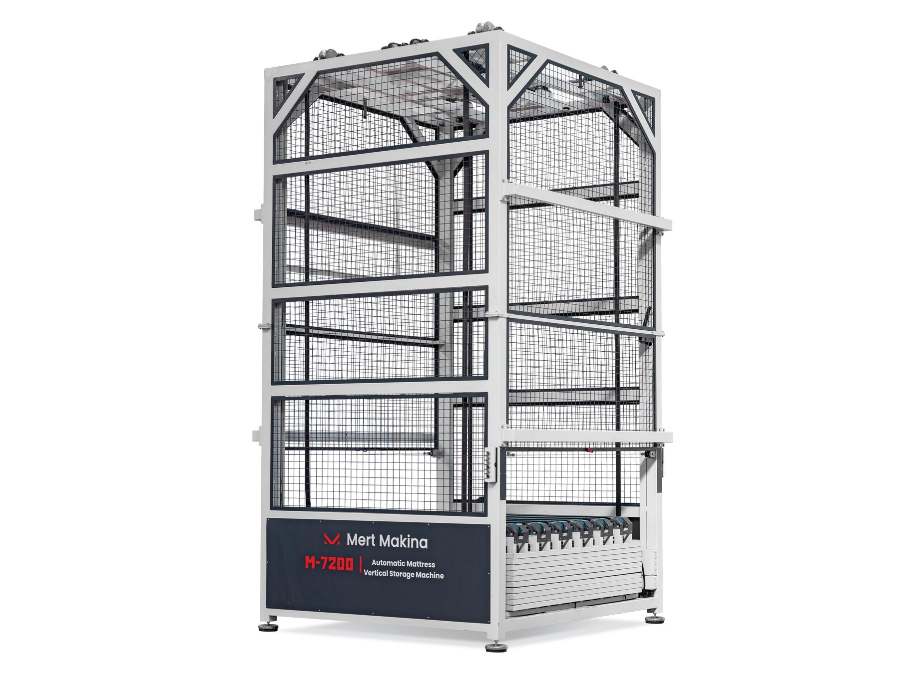 M-7200, bekleme süreleri sırasında sonraki istasyonlarda üretimin durmasını önlemek için birden fazla yatağın istiflenmesini kolaylaştıran otomatik bir dikey yatak istifleme sistemi olarak görev yapar. En önemli işlevi, özellikle alanın kısıtlı olduğu yerleşimlerde üretim verimliliğini arttırmaktır. Paketleme makinasındaki plastik değişiminde, kenar kapama makinalarındaki darboğazlar, ve kalite kontrol alanındaki gecikmeler gibi etkenlerin neden olduğu duraklamaları en aza indiren M-7200, insan müdahalesine gerek kalmadan sorunsuz bir şekilde çalışır. Bu, üretimde sürekli bir akışın korunmasına önemli ölçüde katkıda bulunur.